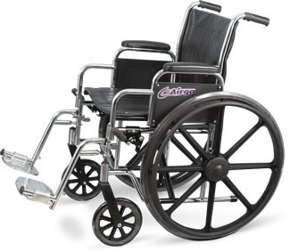An economic alternative offering quality at an affordable price, this wheelchair features dual axle positions that allow for two seat-to-floor heights, a chrome-plated steel frame, adjustable brakes, padded armrests, and flame-retardant black Naugahyde upholstery. All parts are stocked in Canada for fast and easy availability. • Dual axle design offers 2 height settings • Chrome plated steel and padded upholstery • Parts stocked in Canada for fast & easy availability • Maximum weight capacity: 300 lbs (136 Kg) • Latex free