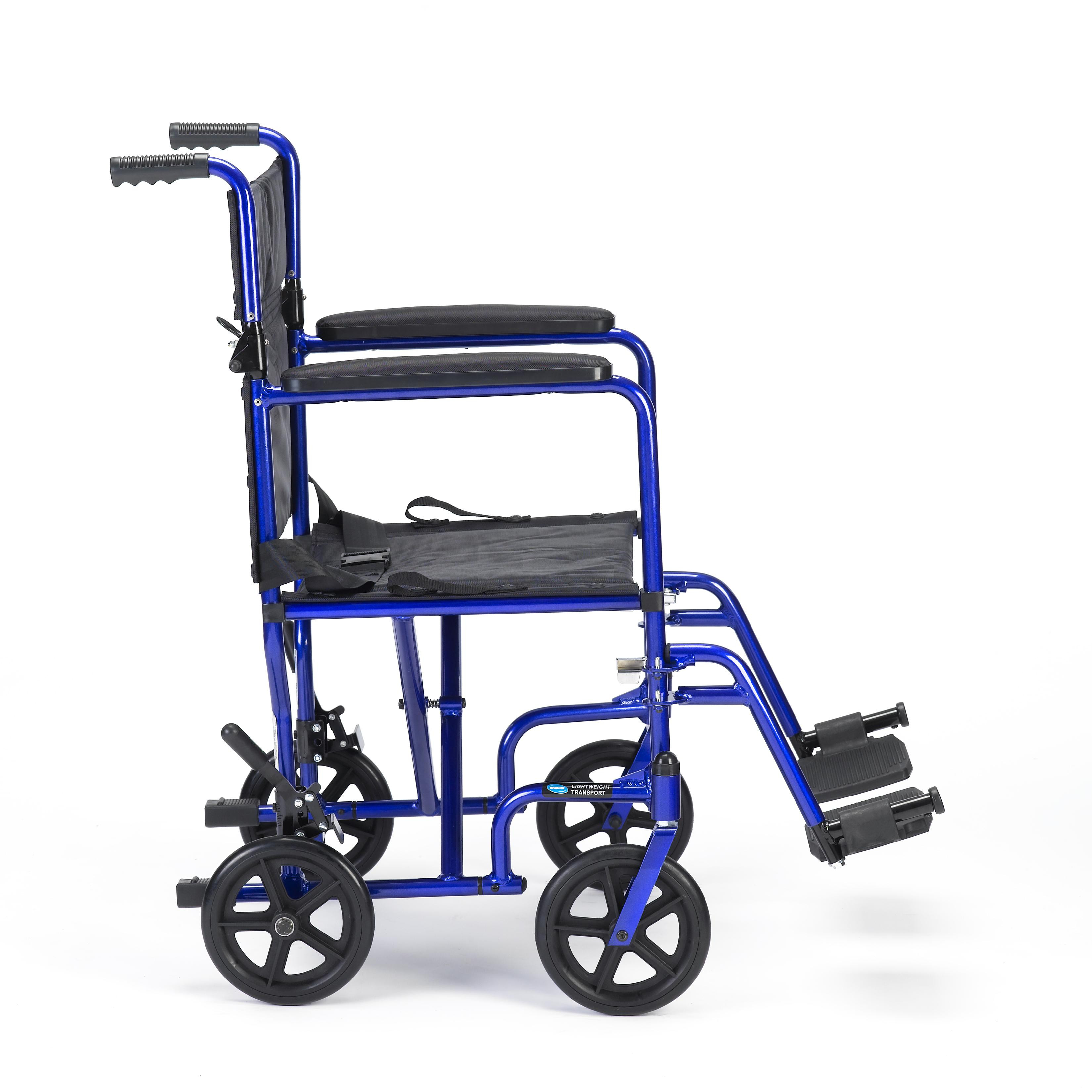 The Invacare® Lightweight Aluminum Transport Chair is designed for safety, ease and comfortable patient transport. The lightweight frame weighs only 19 lb. and incorporates a fold-down back, making these chairs easy to transport and store.